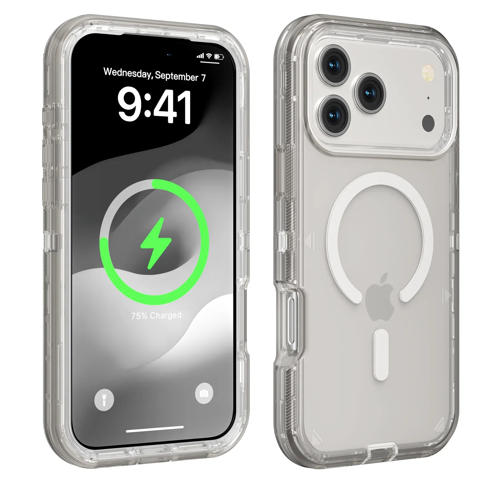 3IN1 Clear Symmetry For Magsafe Ott Armor BOX Case For IPhone17 Air 16 15 14 Plus 13 Pro Max Wireless Charging Transparent Cover