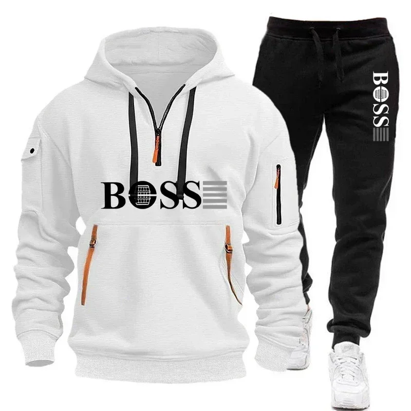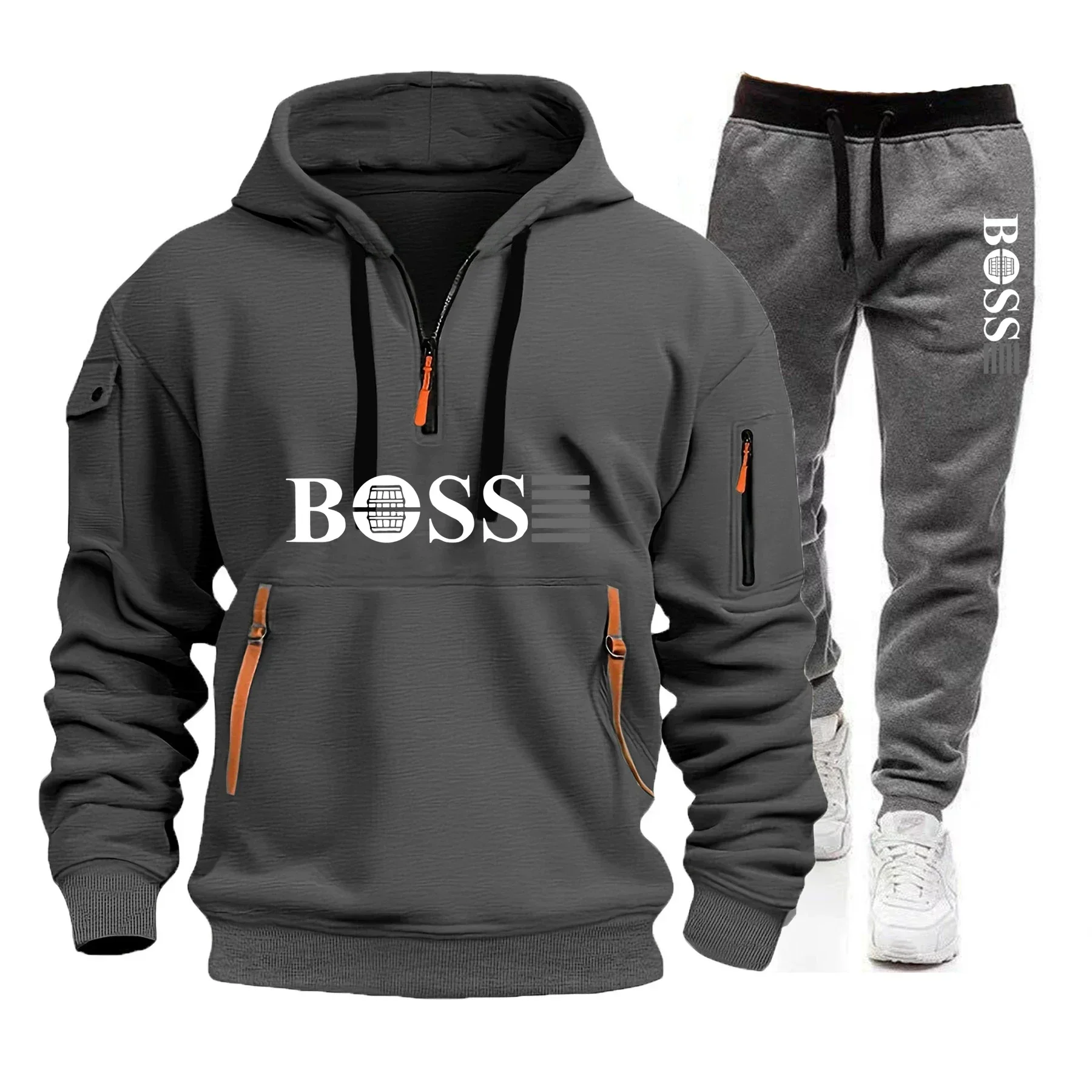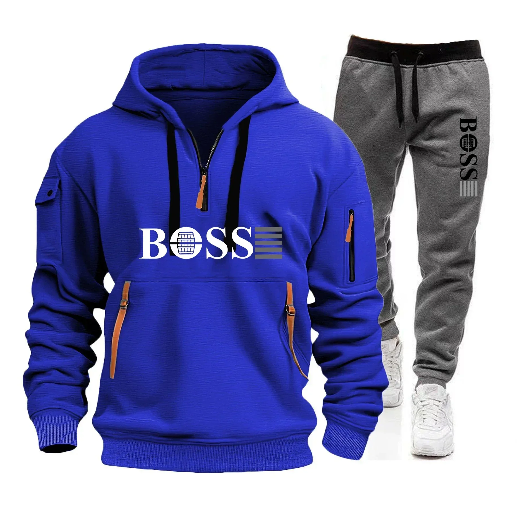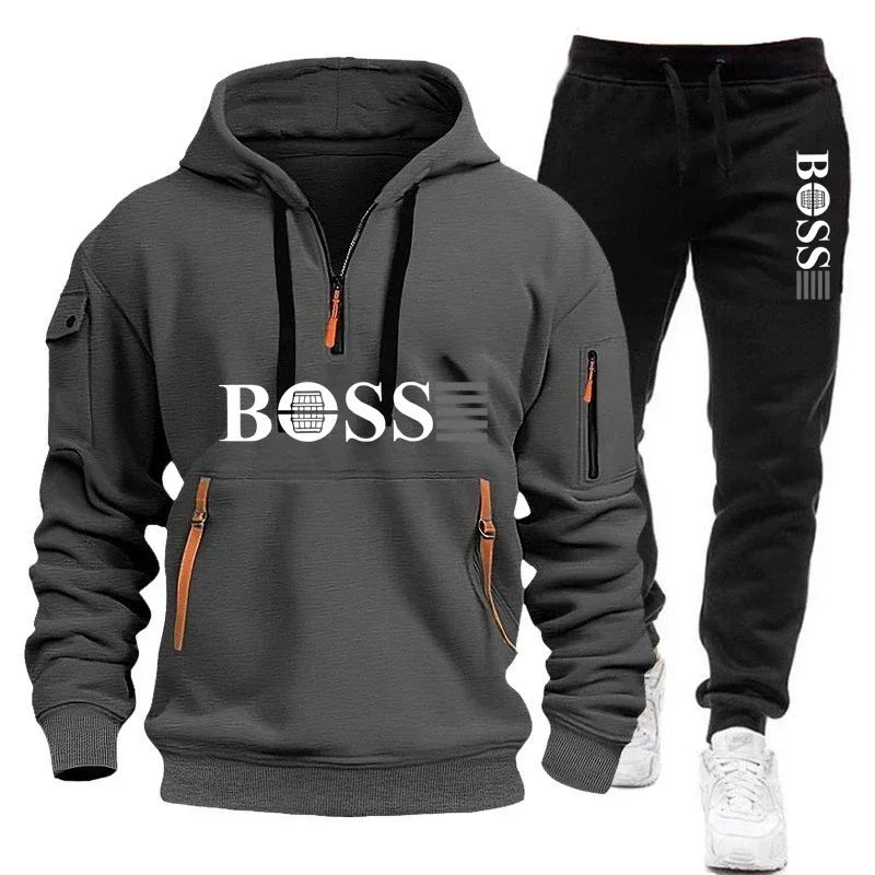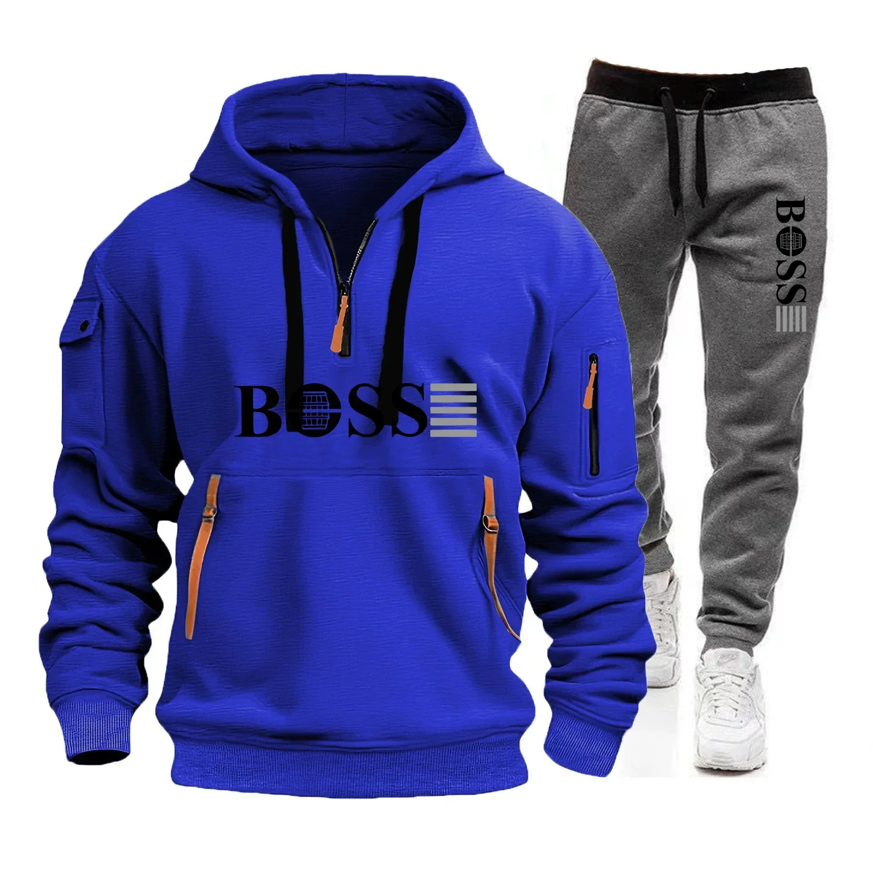 Men's Autumn and Winter Sports Sweatshirts and Sports Pants, Outdoor Jogging Windproof Semi-zipper Comfortable Sports Suits
