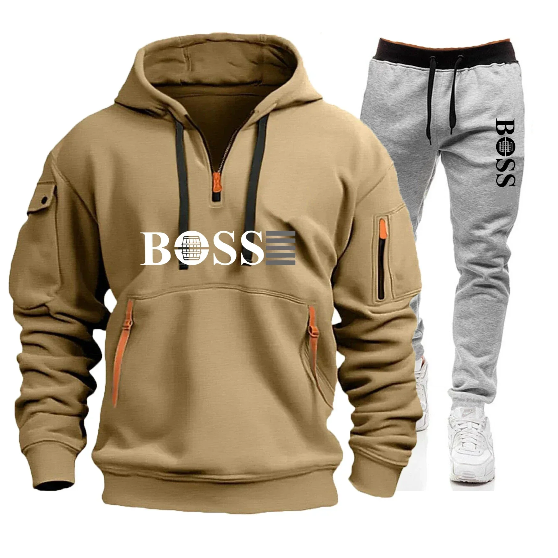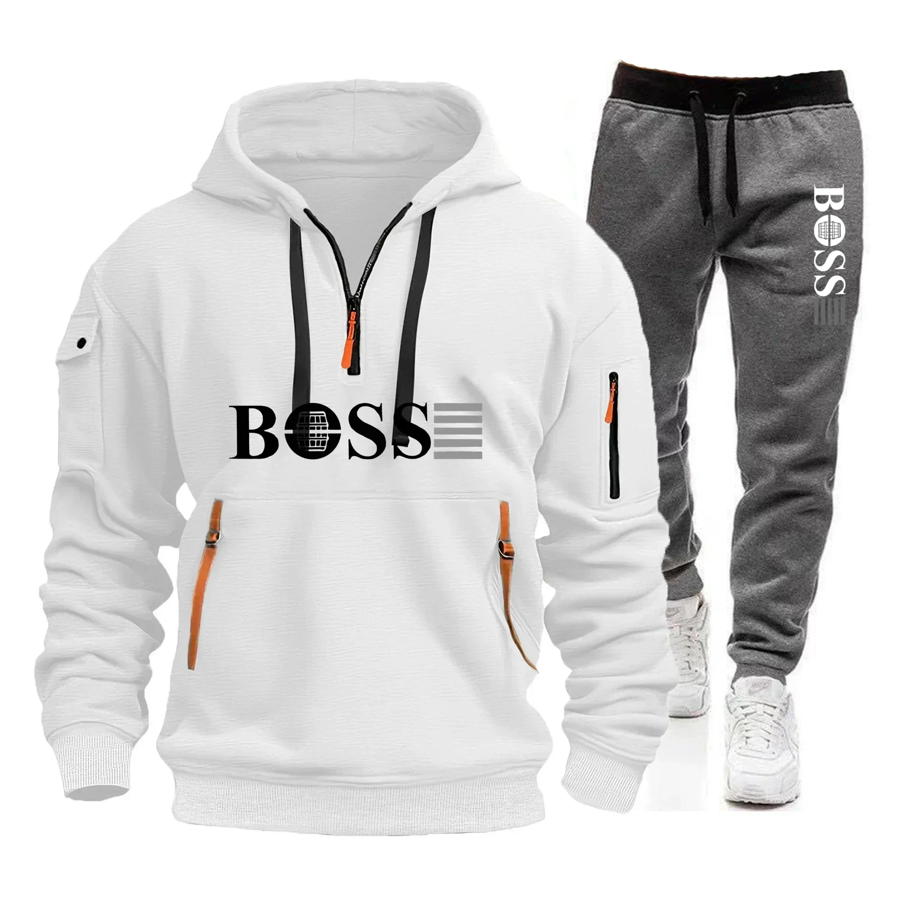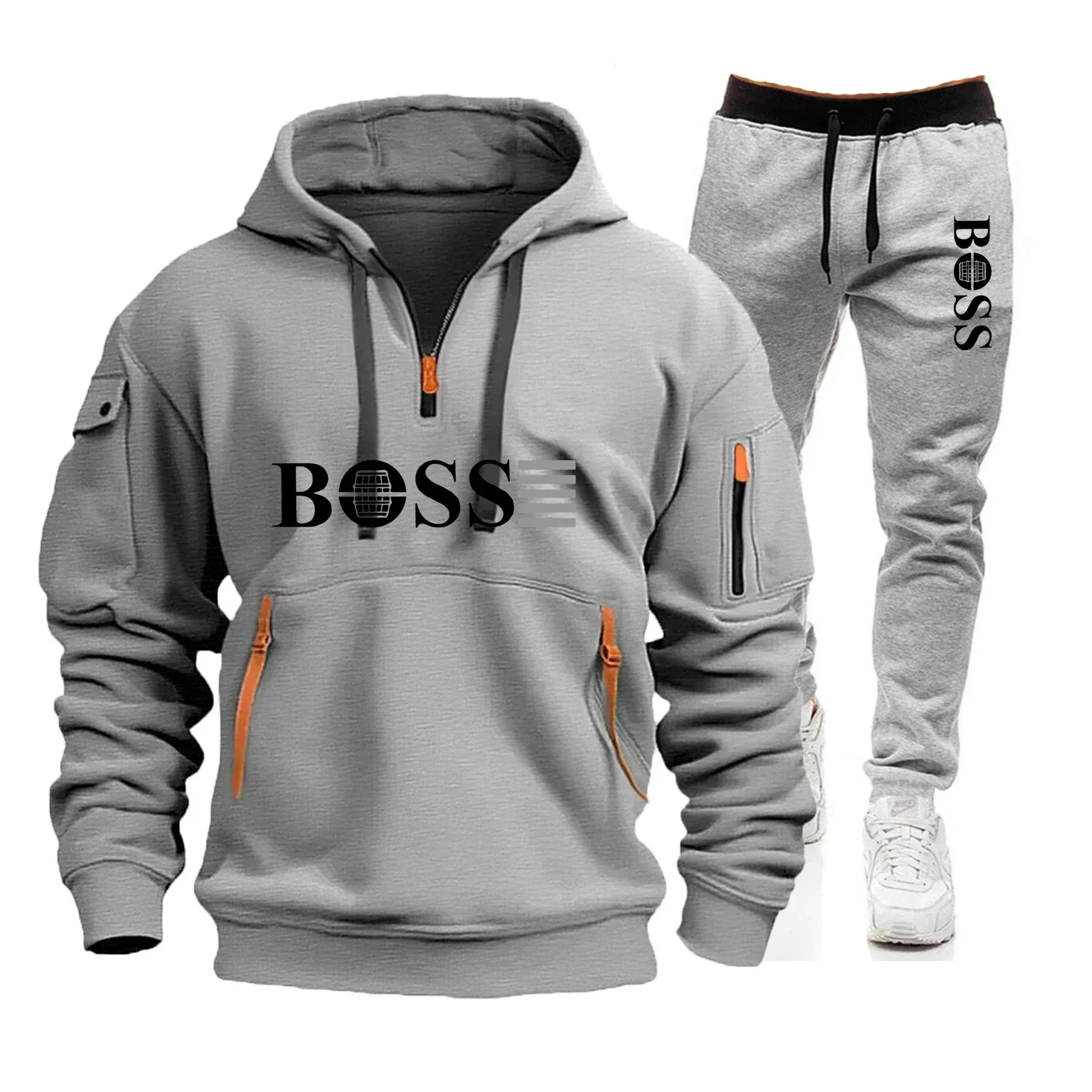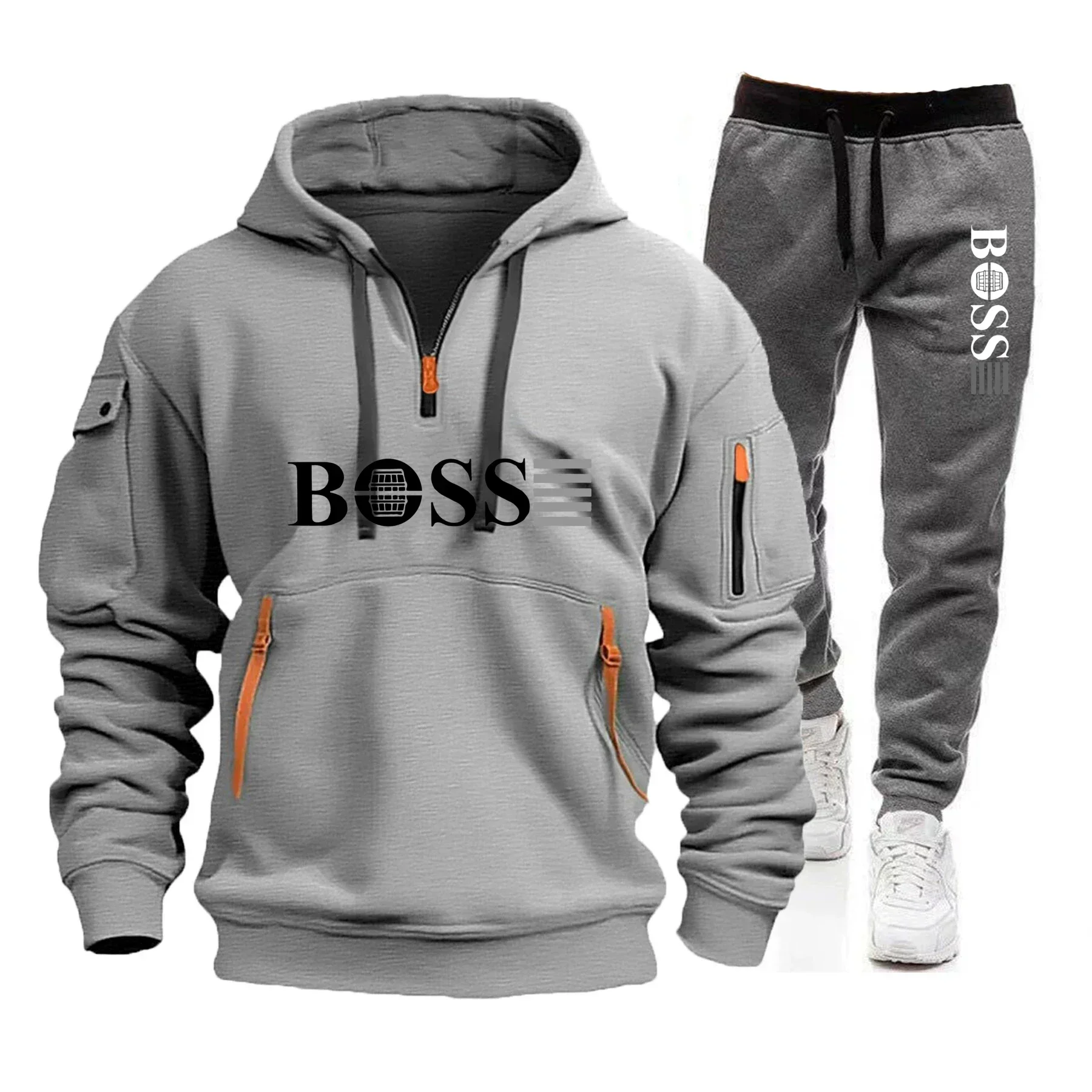 Men's Autumn and Winter Sports Sweatshirts and Sports Pants, Outdoor Jogging Windproof Semi-zipper Comfortable Sports Suits
